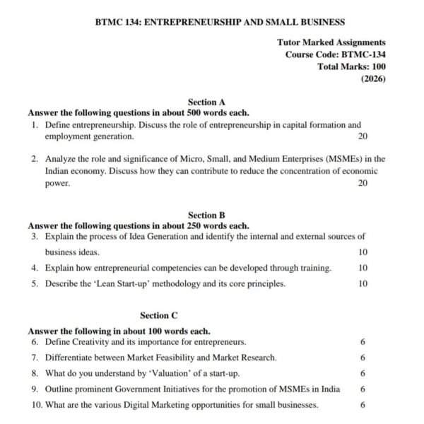 BTMC 134 IGNOU Solved Assignments 2026 (ENGLISH) PDF Download – IGNOU Galaxy