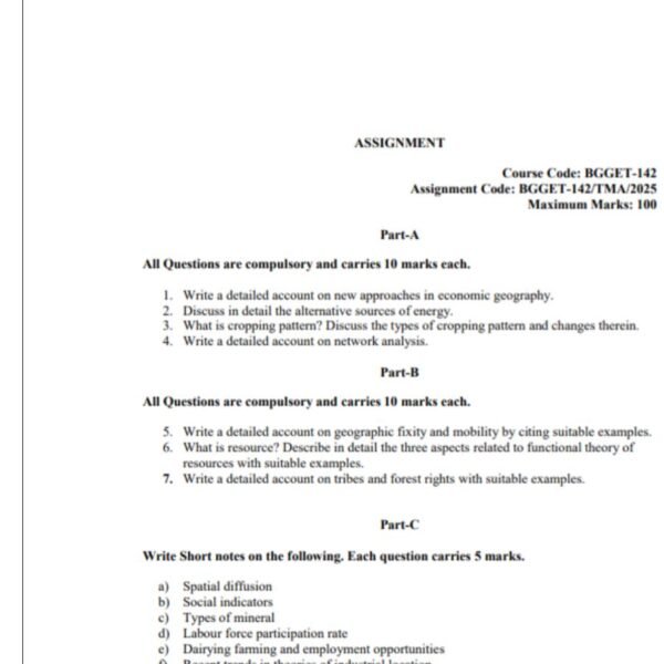 BGGET 142 IGNOU Solved Assignments 2025 (English) PDF Download – IGNOU Galaxy