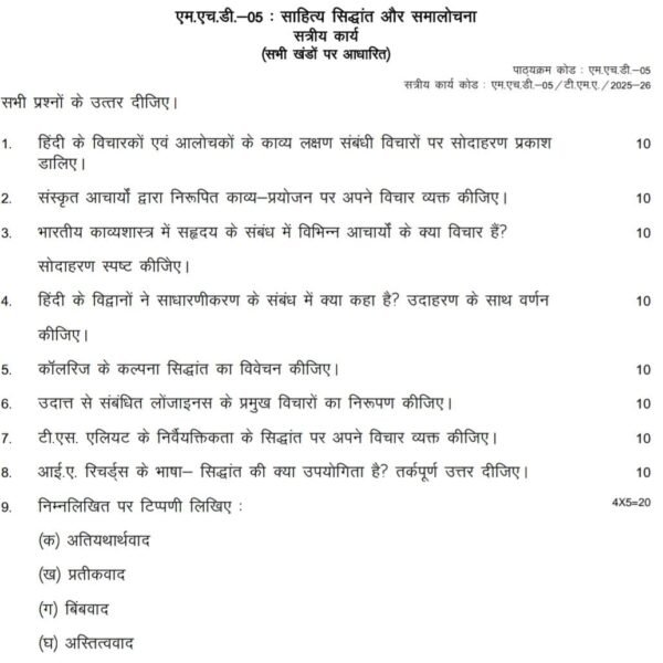 MHD 05 IGNOU Solved Assignments 2025-26 (Hindi) PDF Download – IGNOU Galaxy