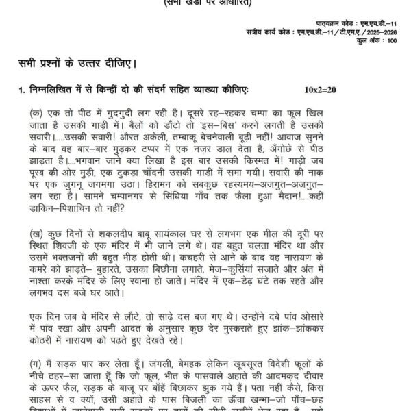 MHD 11 IGNOU Solved Assignments 2025-26 (Hindi) PDF Download – IGNOU Galaxy