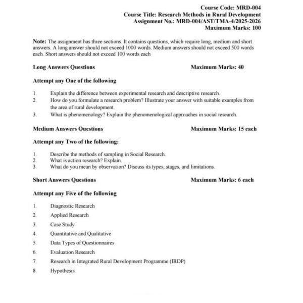 MRD 004 IGNOU Solved Assignments 2025-26 (English) PDF Download – IGNOU Galaxy