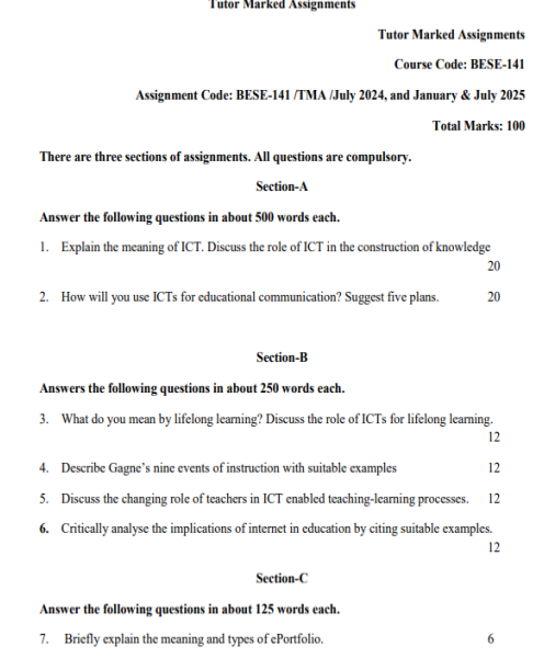 BESE 141 IGNOU Solved Assignments 2024-25 (English) PDF Download – IGNOU Galaxy