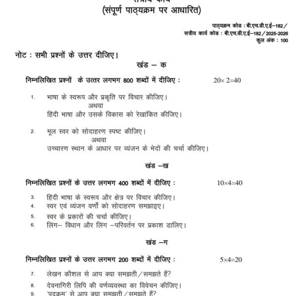BHDAE 182 IGNOU Solved Assignments 2025-2026 (HINDI) PDF Download – IGNOU Galaxy