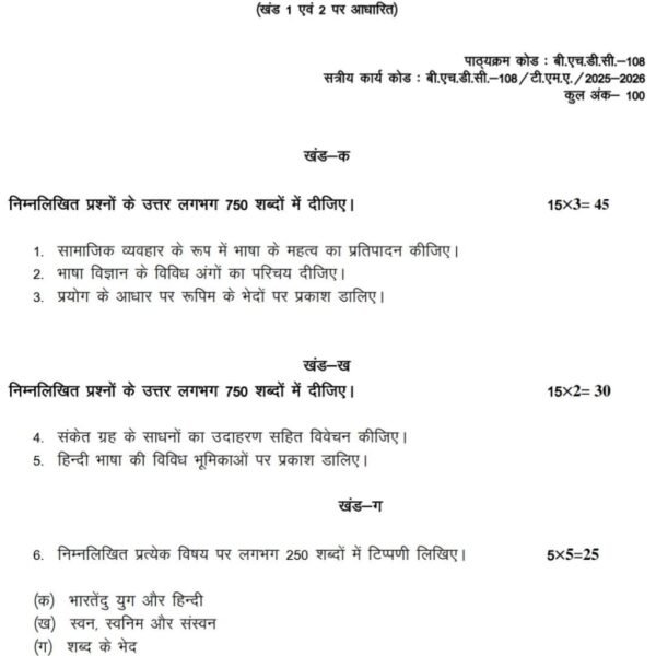 BHDC 108 IGNOU Solved Assignments 2025-26 (Hindi) PDF Download – IGNOU Galaxy