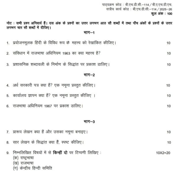 BHDC 114 IGNOU Solved Assignments 2025-26 (Hindi) PDF Download – IGNOU Galaxy