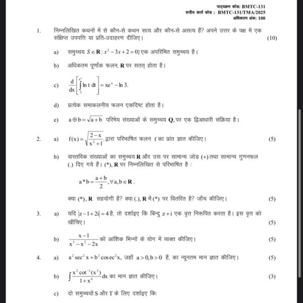 BMTC 131 IGNOU Solved Assignments 2025 (HINDI) PDF Download – IGNOU Galaxy