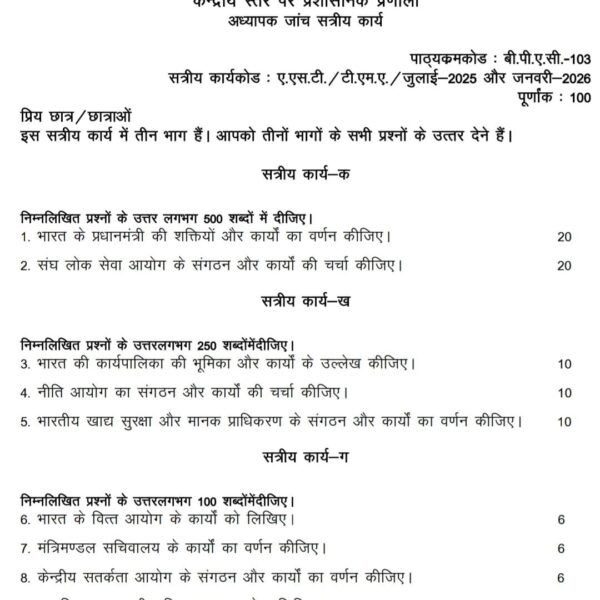 BPAC 103 IGNOU Solved Assignments 2025-26 (Hindi) PDF Download – IGNOU Galaxy