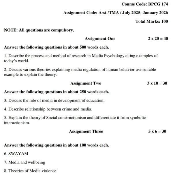 BPCG 174 IGNOU Solved Assignments 2025-26 (English) PDF Download – IGNOU Galaxy