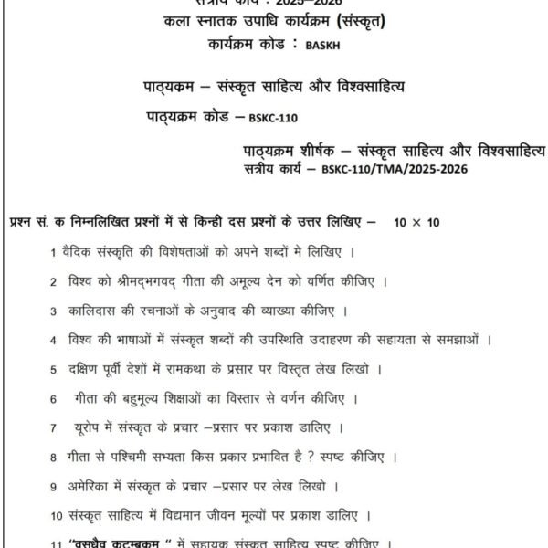 BSKC 110 IGNOU Solved Assignments 2025-26 (Sanskrit) PDF Download – IGNOU Galaxy