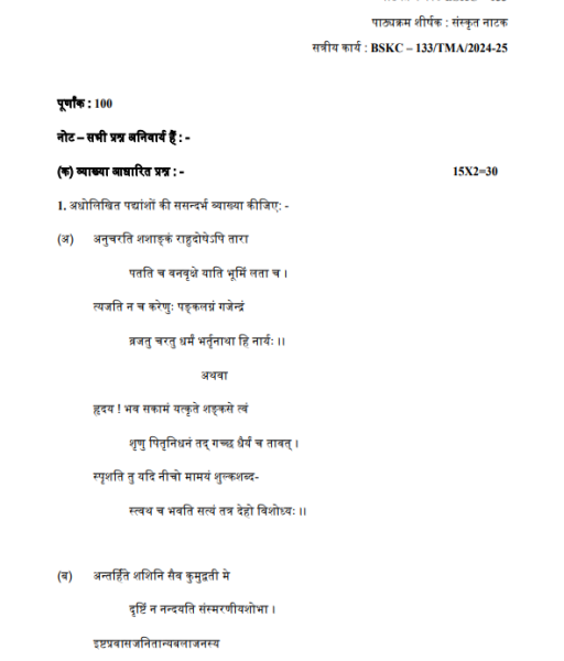 BSKC 133 IGNOU Solved Assignments 2024-25 (Sanskrit) PDF Download – IGNOU Galaxy