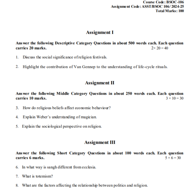 BSOC 106 IGNOU Solved Assignments 2024-25 (English) PDF Download – IGNOU Galaxy