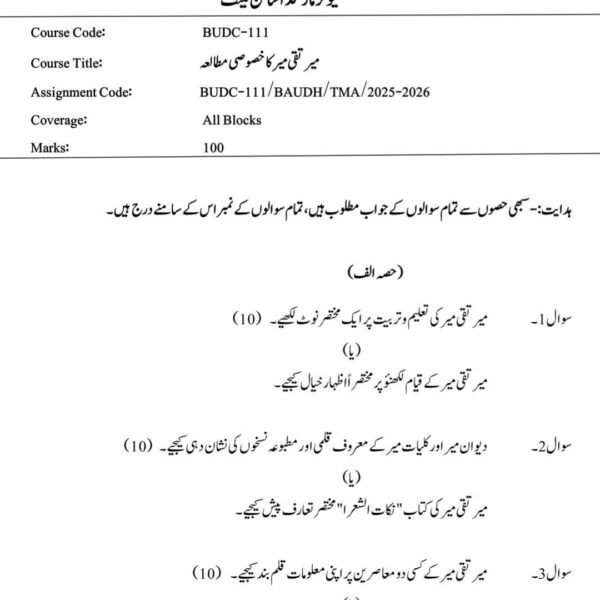 BUDC 111 IGNOU Solved Assignments 2025-26 (URDU) PDF Download – IGNOU Galaxy