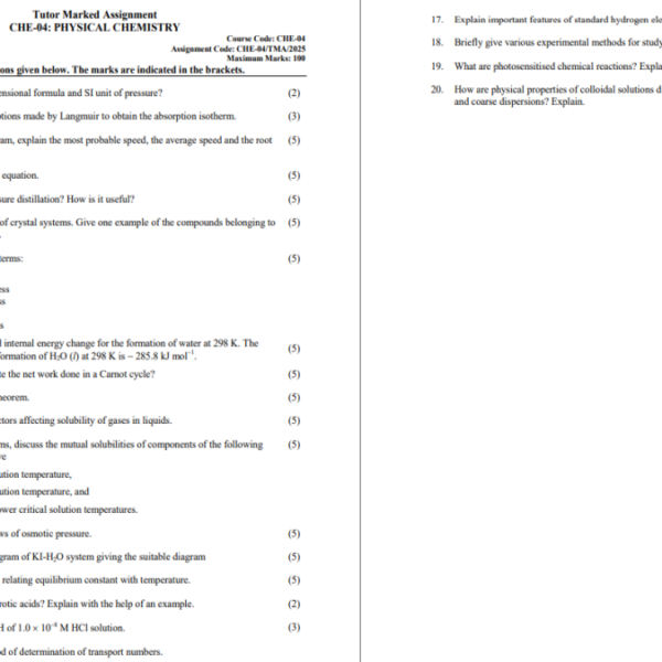 CHE 04 IGNOU Solved Assignments 2025 (English) PDF Download – IGNOU Galaxy