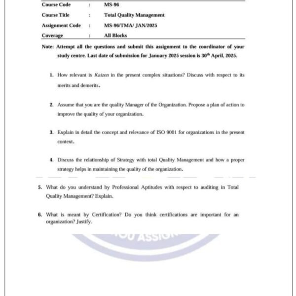 MS 96 IGNOU Solved Assignments 2025 (English) PDF Download – IGNOU Galaxy