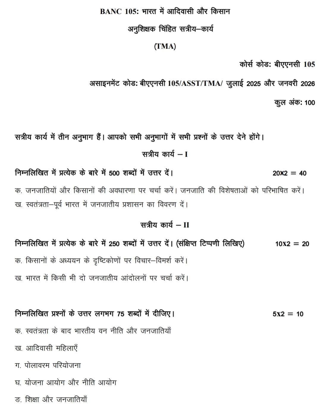 BANC 105 IGNOU Solved Assignments 2025-26 (Hindi) PDF Download – IGNOU Galaxy