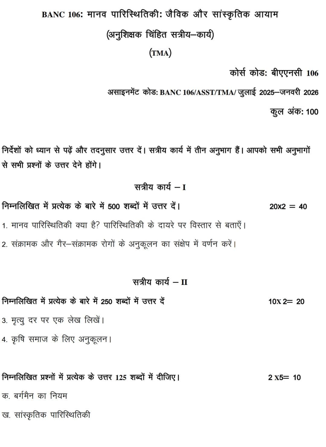BANC 106 IGNOU Solved Assignments 2025-26 (Hindi) PDF Download – IGNOU Galaxy