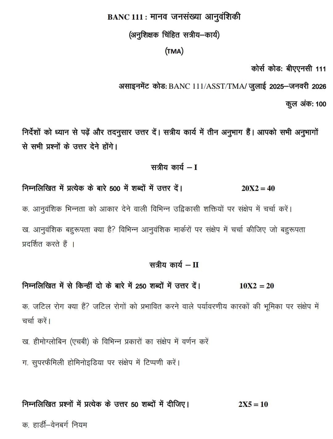 BANC 111 IGNOU Solved Assignments 2025-26 (Hindi) PDF Download – IGNOU Galaxy