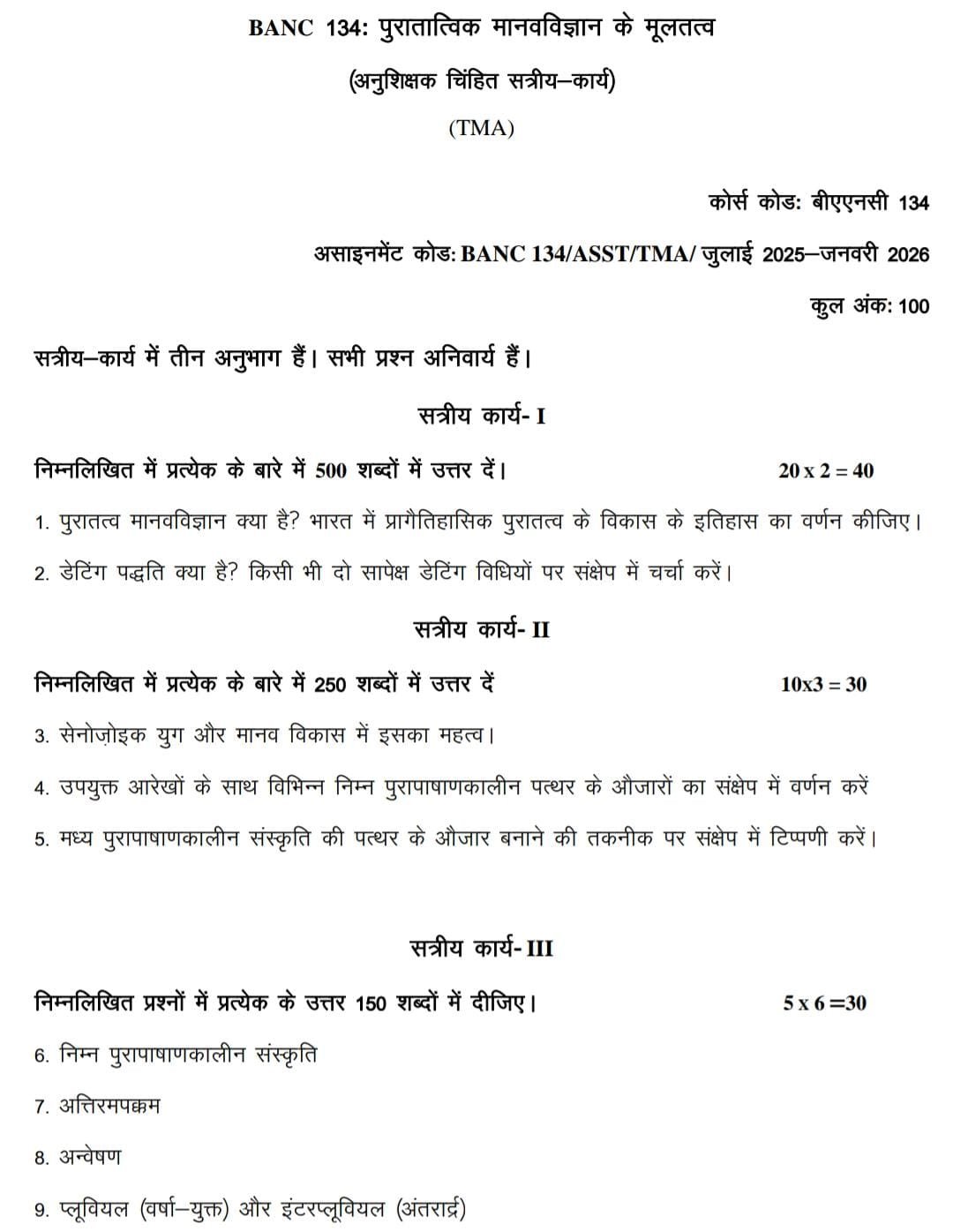 BANC 134 IGNOU Solved Assignments 2025-26 (Hindi) PDF Download – IGNOU Galaxy