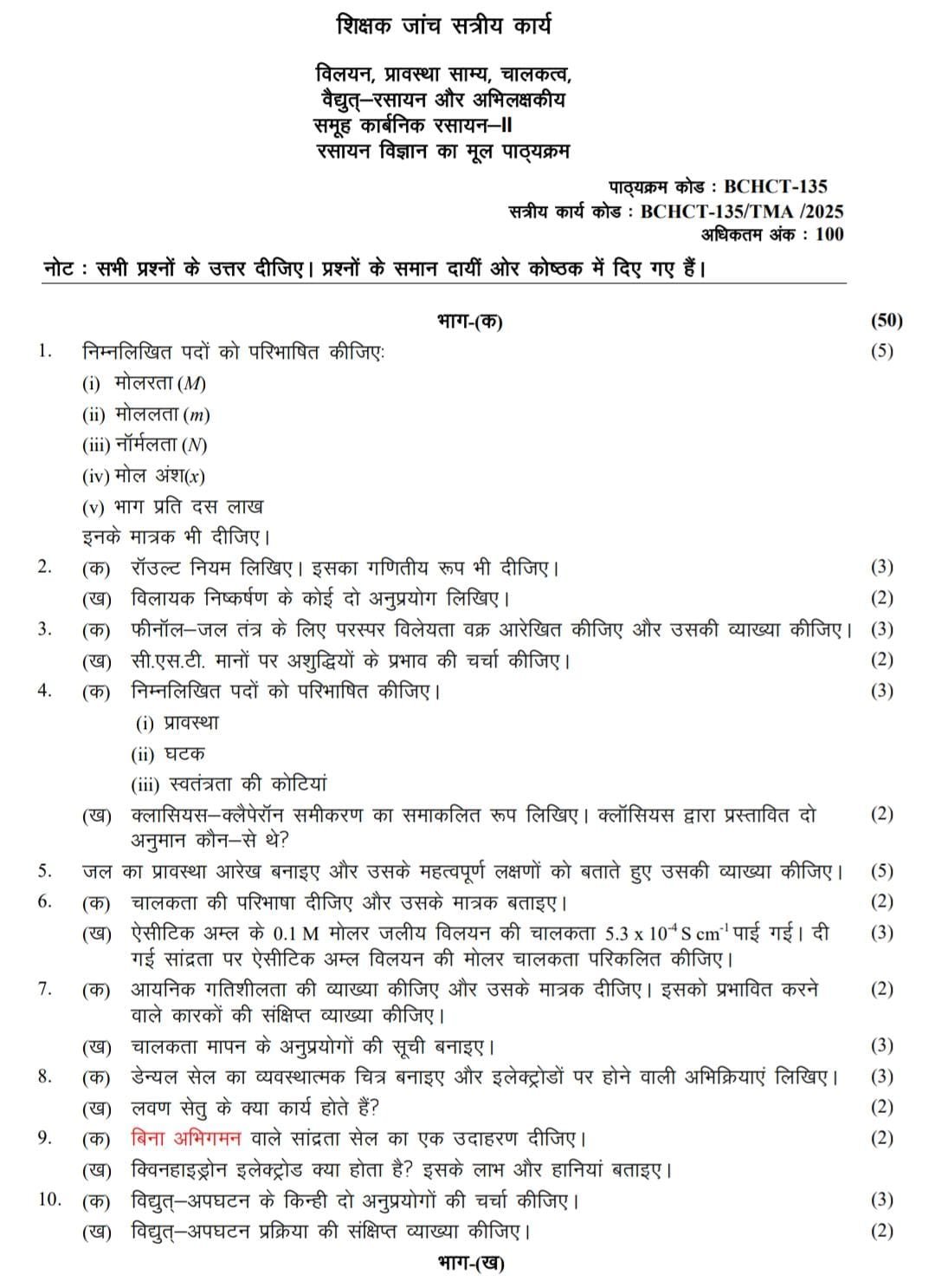 BCHCT 135 IGNOU Solved Assignments 2026 (HINDI) PDF Download – IGNOU Galaxy