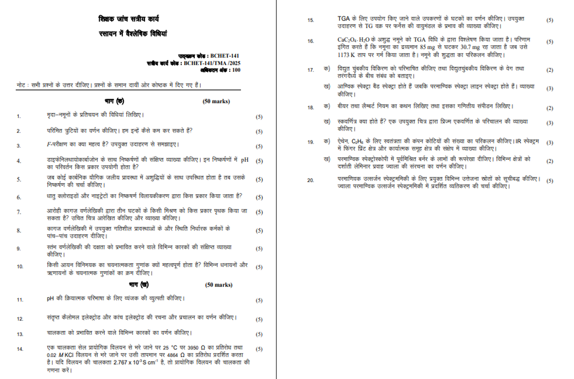 BCHET 141 IGNOU Solved Assignments 2025 (Hindi) PDF Download – IGNOU Galaxy