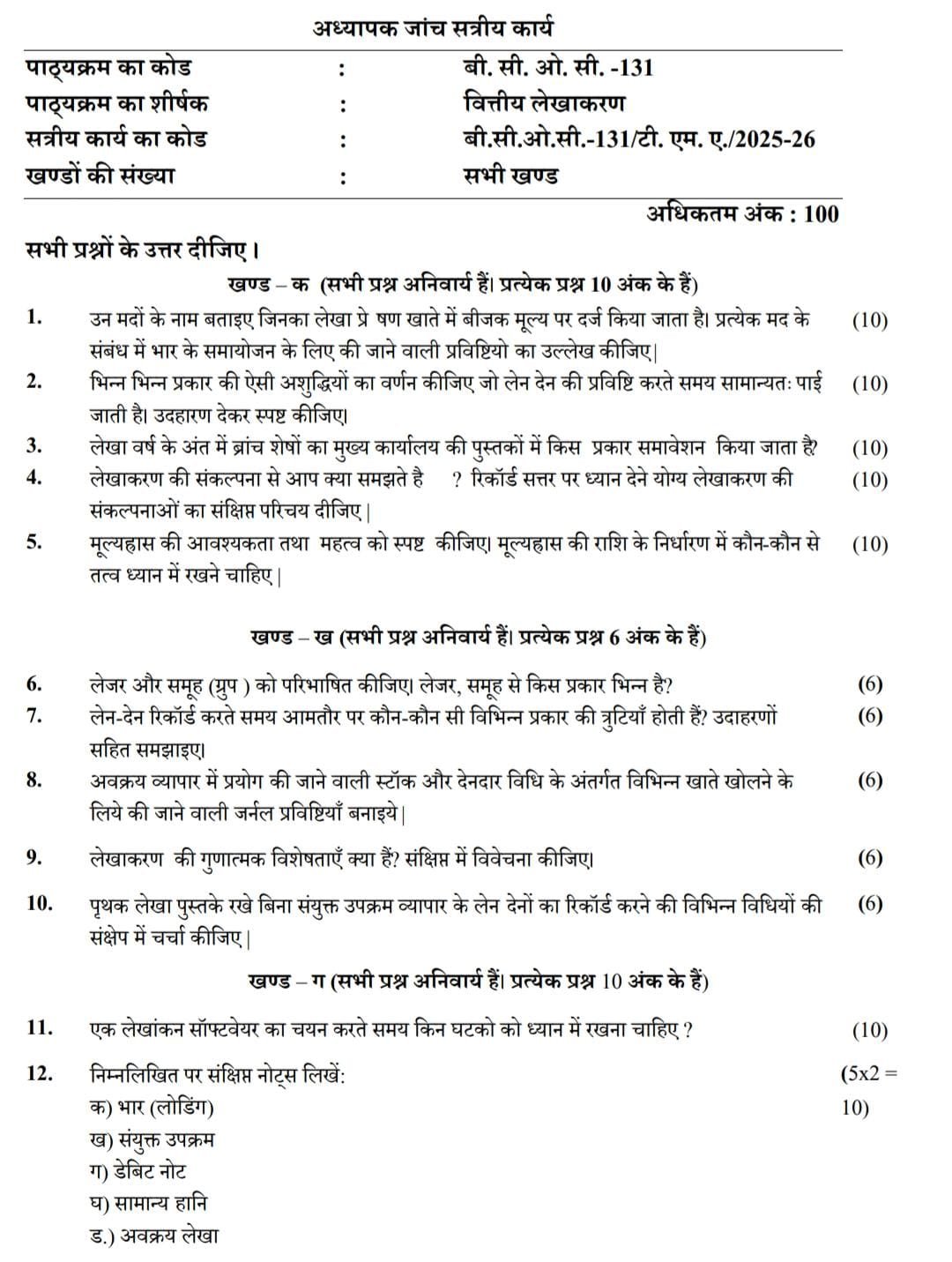 BCOC 131 IGNOU Solved Assignments 2025-26 (hindi) PDF Download – IGNOU Galaxy