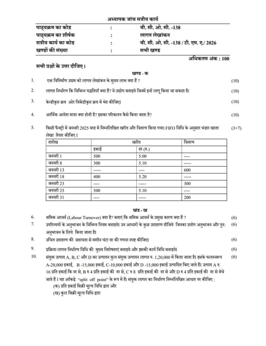 BCOC 138 IGNOU Solved Assignments 2026 (Hindi) PDF Download – IGNOU Galaxy
