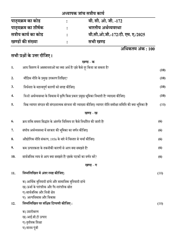 BCOG 172 IGNOU Solved Assignments 2025 (Hindi) PDF Download – IGNOU Galaxy