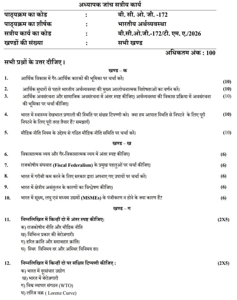 BCOG 172 IGNOU Solved Assignments 2026 (Hindi) PDF Download – IGNOU Galaxy
