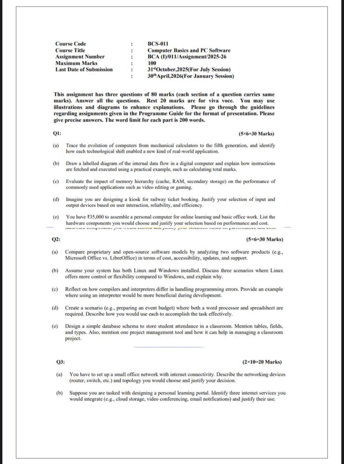 BCS 011 IGNOU Solved Assignments 2025-26 (English) PDF Download – IGNOU Galaxy