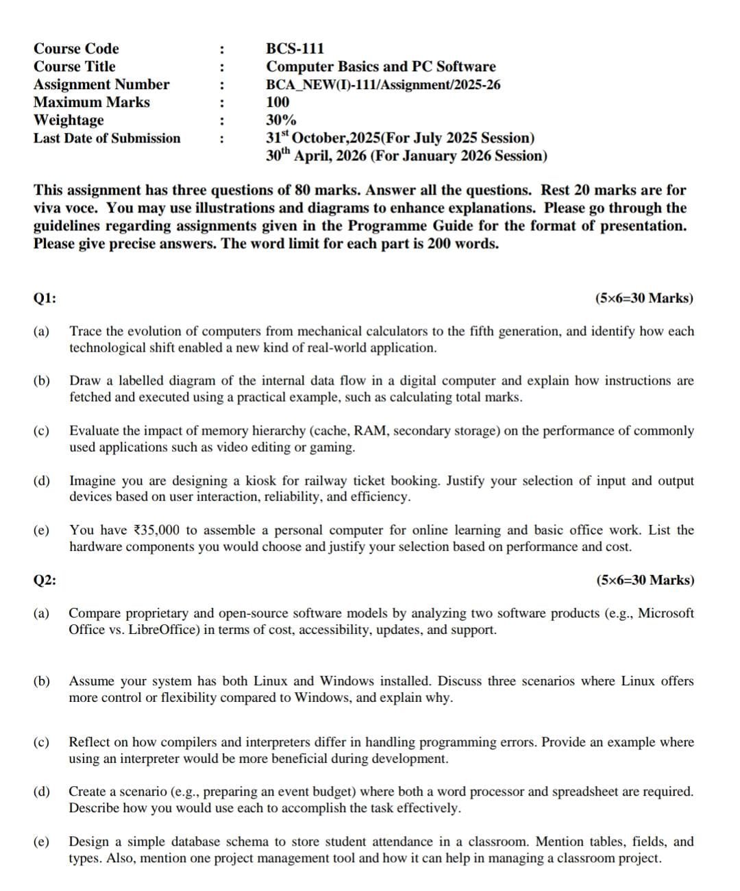 - Better Marks: Solutions sourced from multiple BCS-111 reference materials.