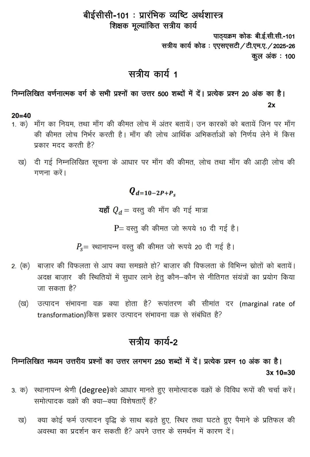 BECC 101 IGNOU Solved Assignments 2025-26 (Hindi) PDF Download – IGNOU Galaxy