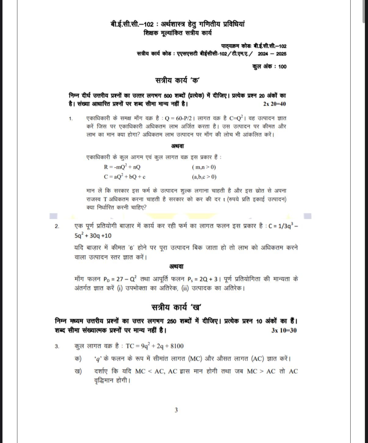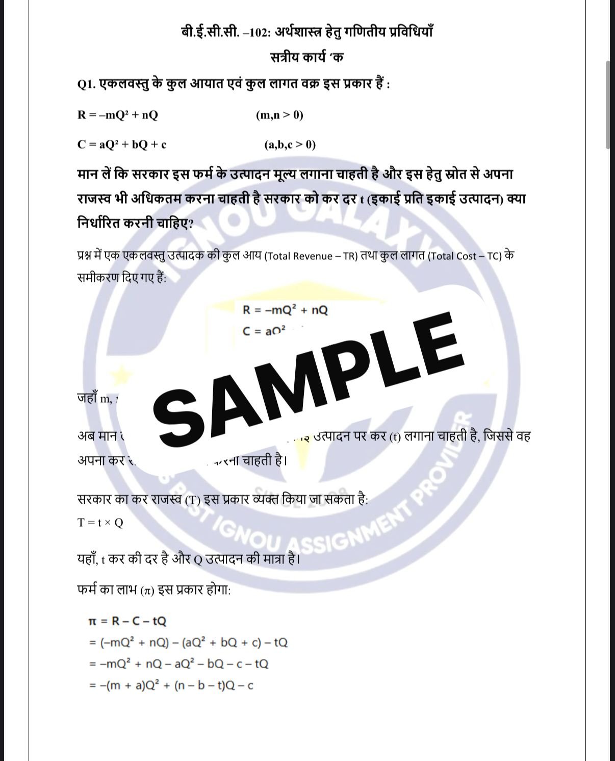 BECC 102 IGNOU Solved Assignments 2024-25 (HINDI) PDF Download – IGNOU Galaxy