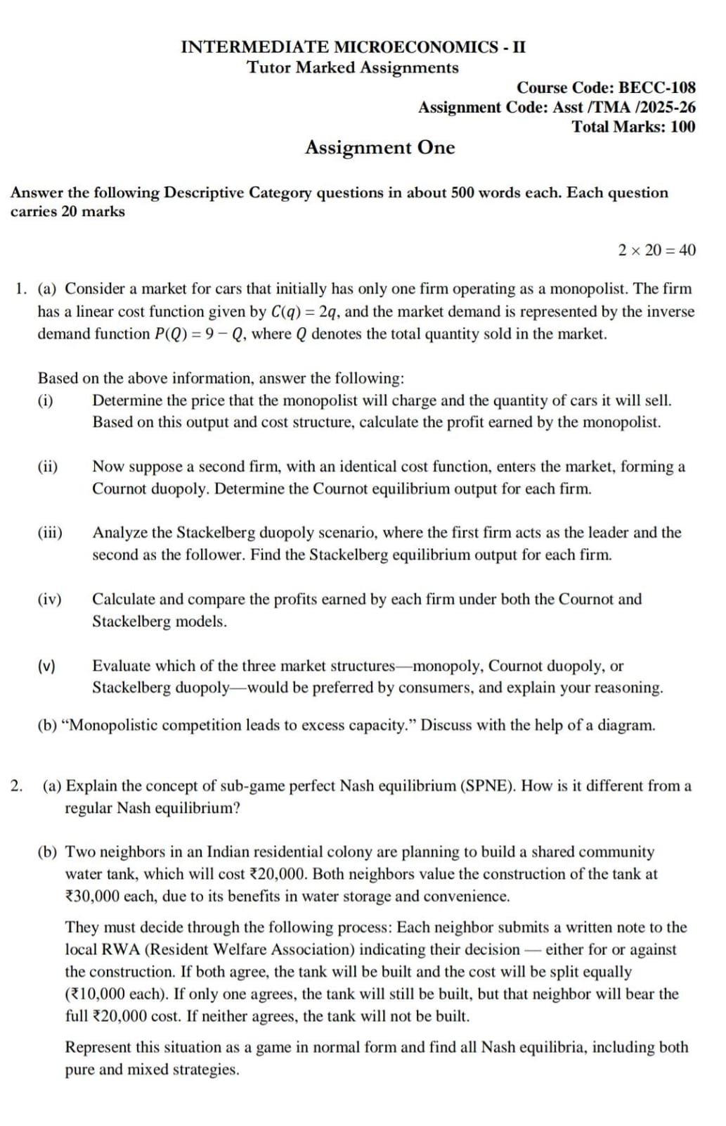 BECC 108 IGNOU Solved Assignments 2025-26 (English) PDF Download – IGNOU Galaxy