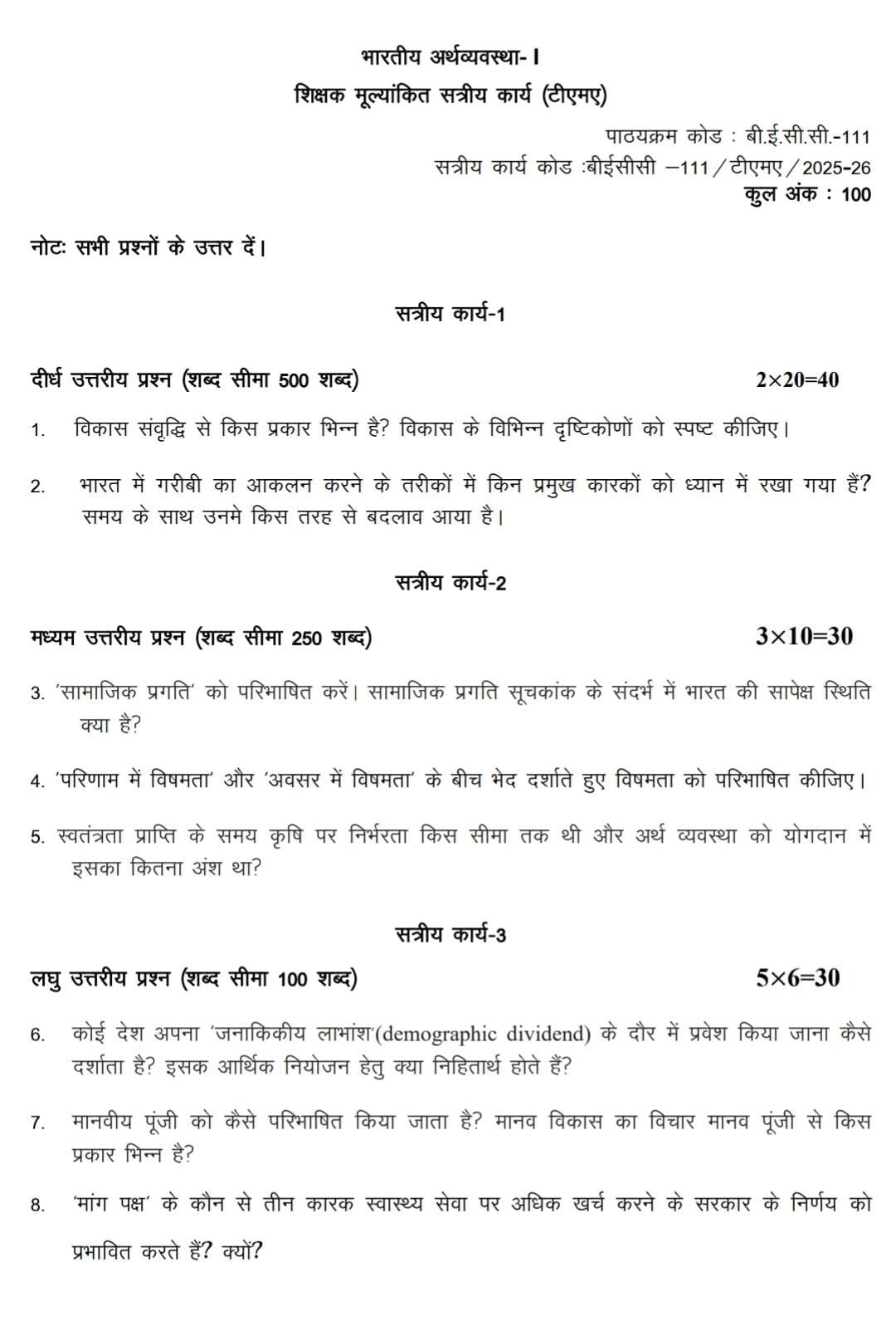BECC 111 IGNOU Solved Assignments 2025-26 (Hindi) PDF Download – IGNOU Galaxy