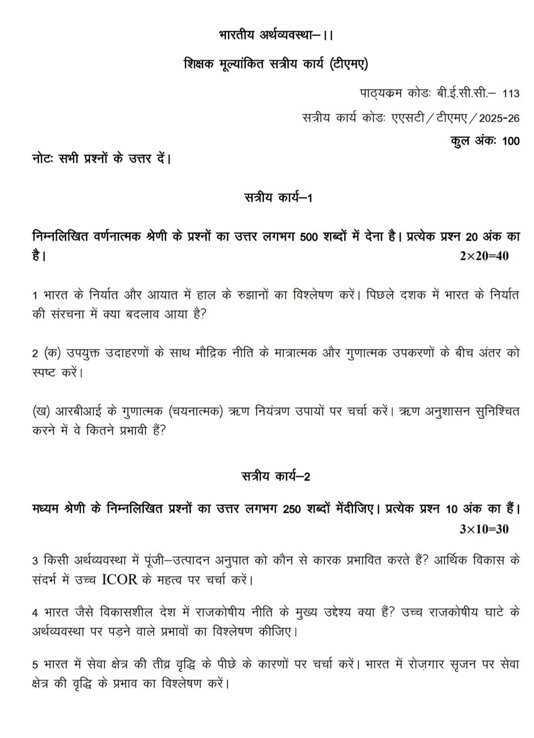 BECC 113 IGNOU Solved Assignments 2025-26 (Hindi) PDF Download – IGNOU Galaxy
