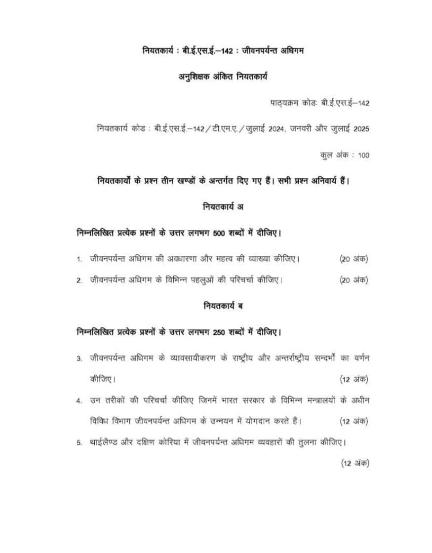 BESE 142 IGNOU Solved Assignments 2024-25 (Hindi) PDF Download – IGNOU Galaxy