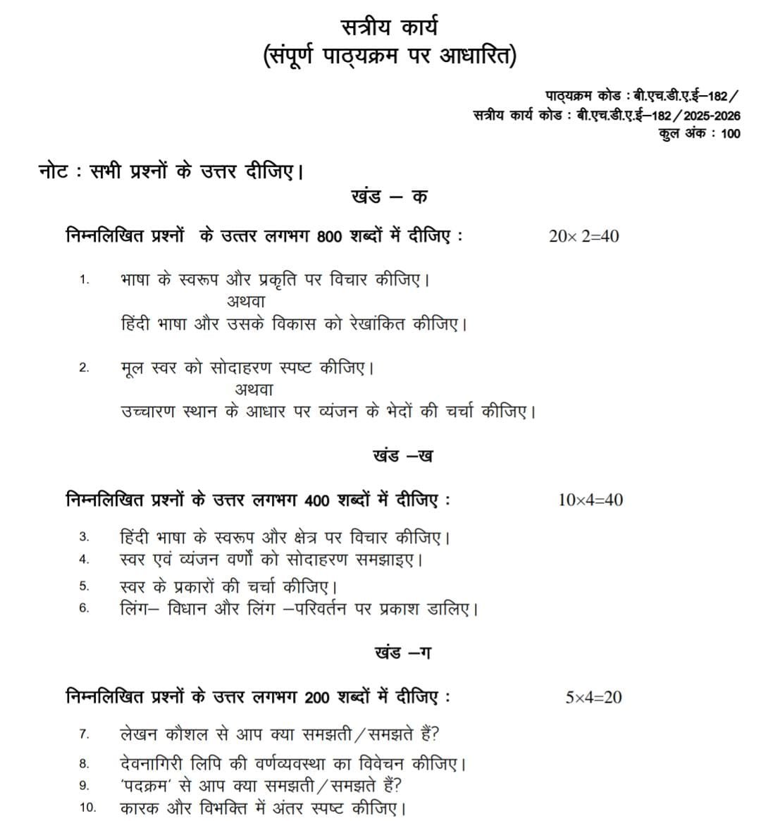 BHDAE 182 IGNOU Solved Assignments 2025-2026 (HINDI) PDF Download – IGNOU Galaxy