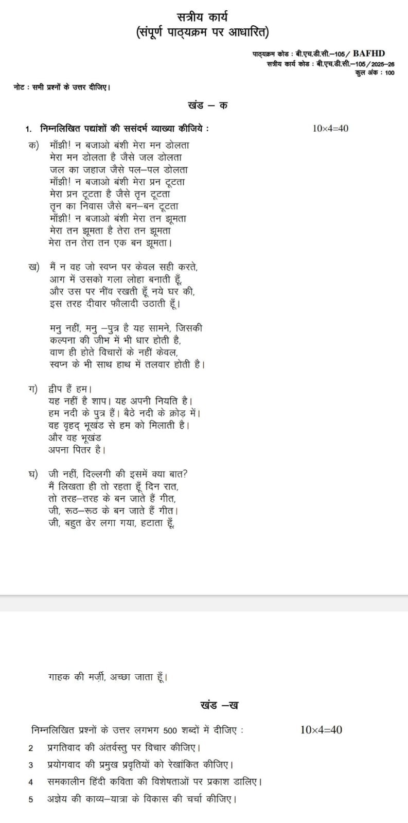 BHDC 105 IGNOU Solved Assignments 2025-26 (Hindi) PDF Download – IGNOU Galaxy