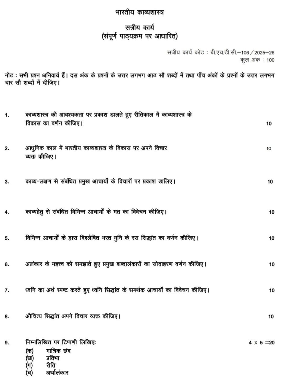 BHDC 106 IGNOU Solved Assignments 2025-26 (Hindi) PDF Download – IGNOU Galaxy