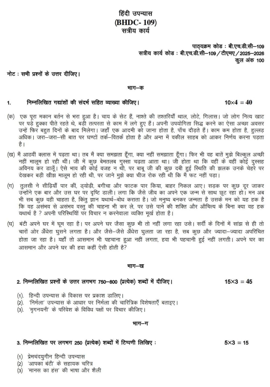 BHDC 109 IGNOU Solved Assignments 2025-26 (Hindi) PDF Download – IGNOU Galaxy