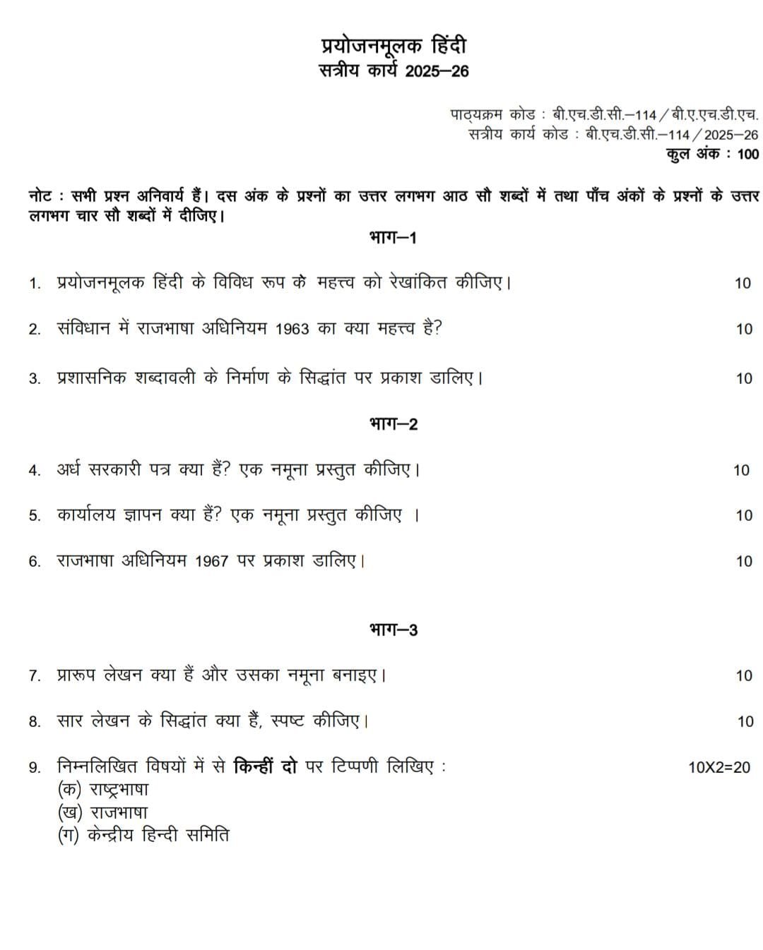BHDC 114 IGNOU Solved Assignments 2025-26 (Hindi) PDF Download – IGNOU Galaxy