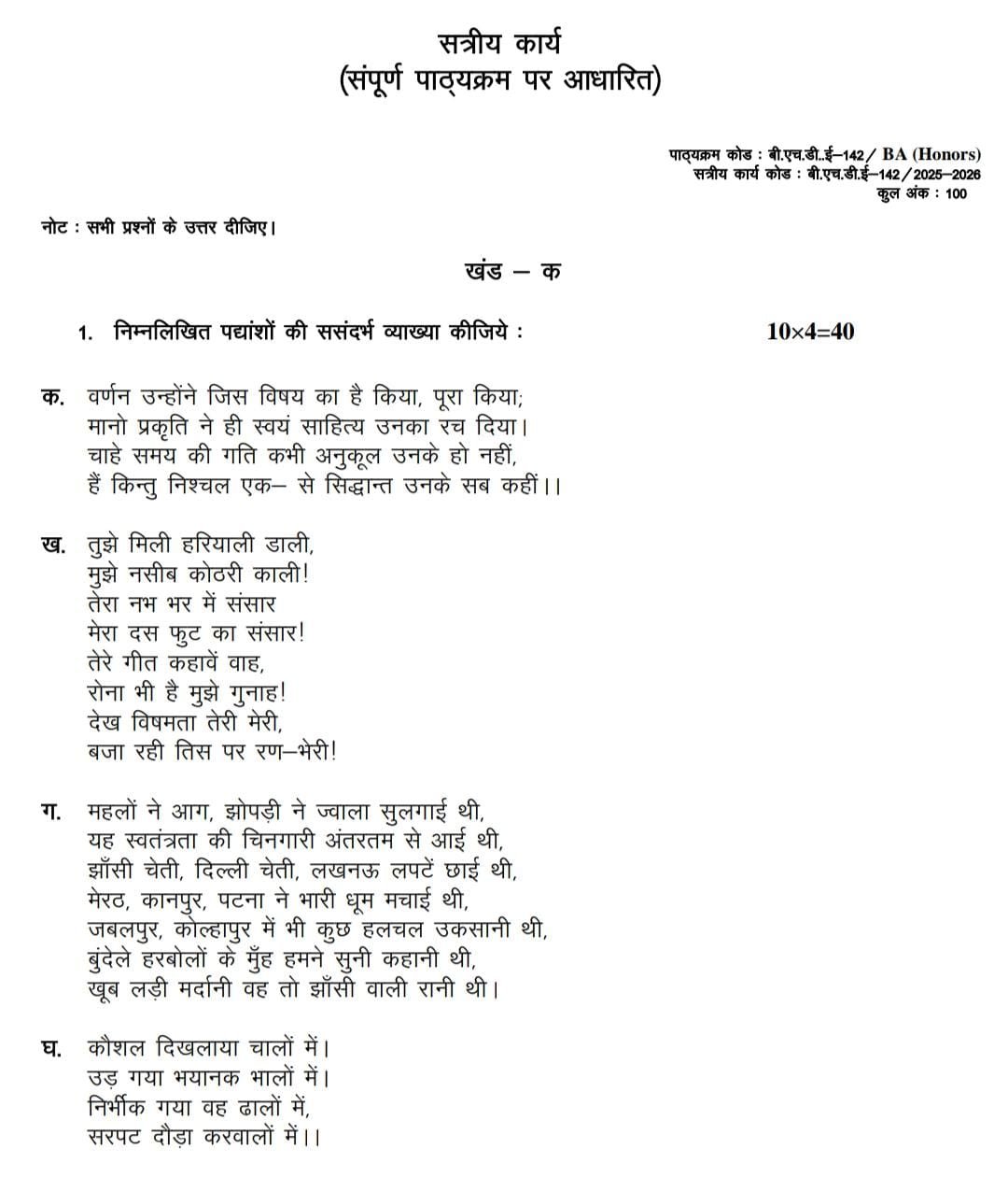 BHDE-142 IGNOU Solved Assignments 2025-26 (HINDI) PDF Download – IGNOU Galaxy