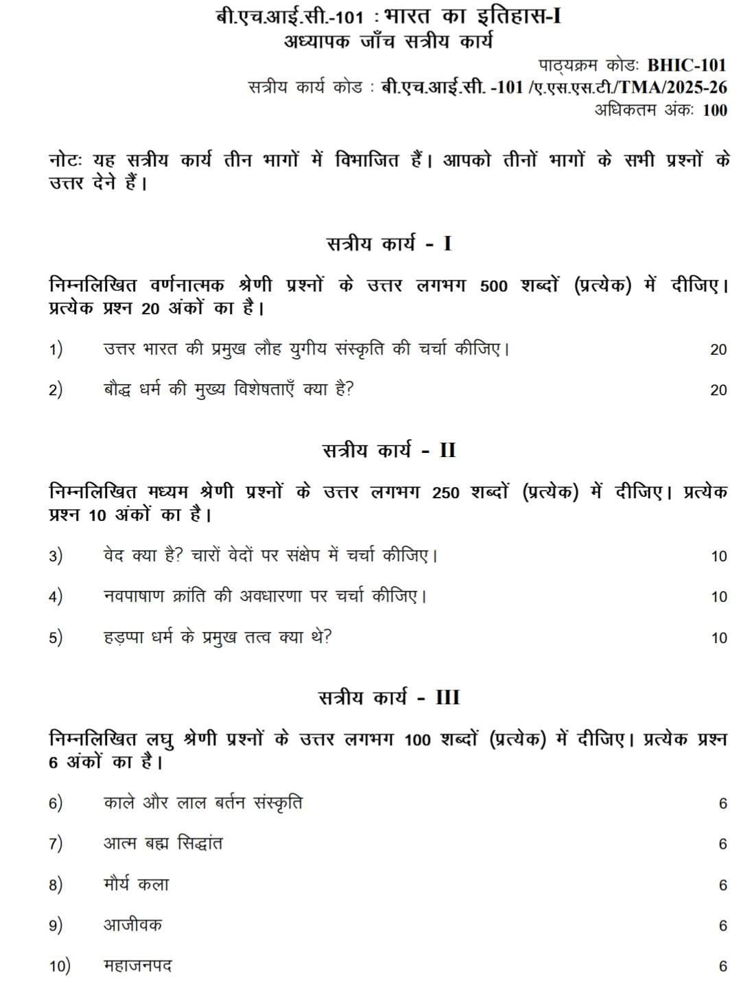BHIC 101 IGNOU Solved Assignments 2025-26 (Hindi) PDF Download – IGNOU Galaxy