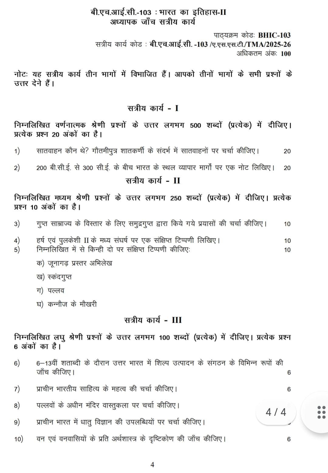 BHIC 103 IGNOU Solved Assignments 2025-26 (Hindi) PDF Download – IGNOU Galaxy