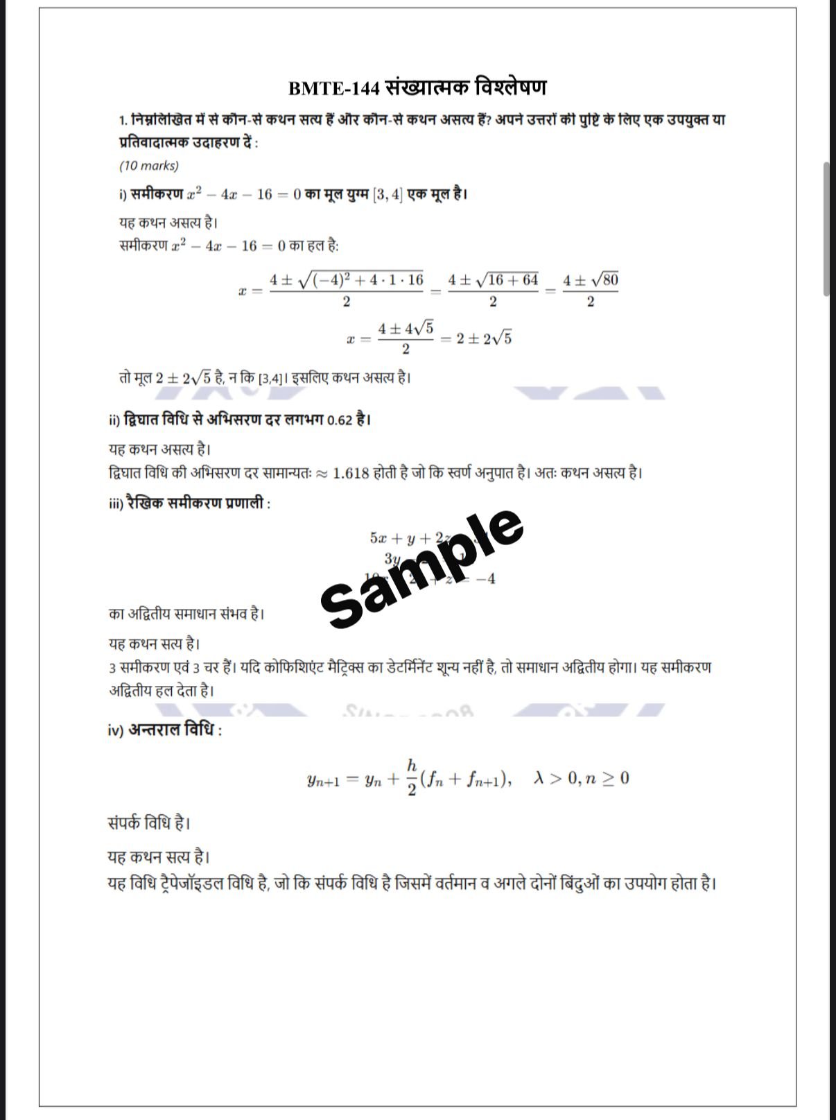 • Better Marks: Solutions sourced from multiple BMTE-144 reference materials.