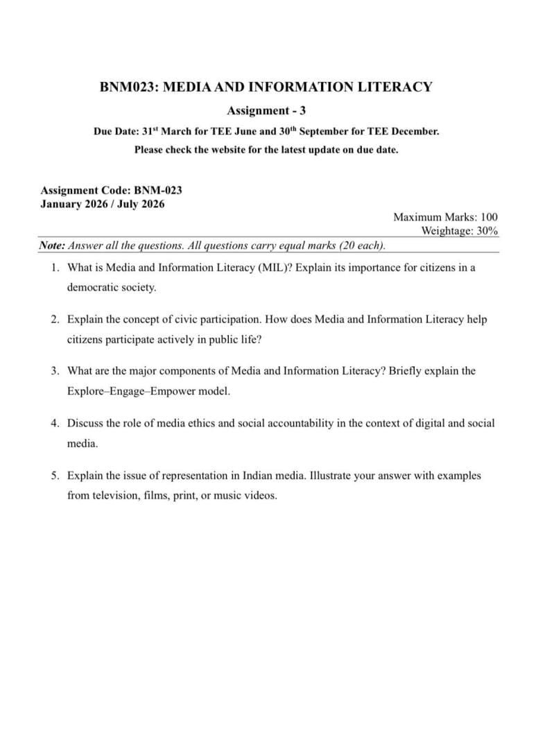 BNM 023 IGNOU Solved Assignments 2026 (ENGLISH) PDF Download – IGNOU Galaxy