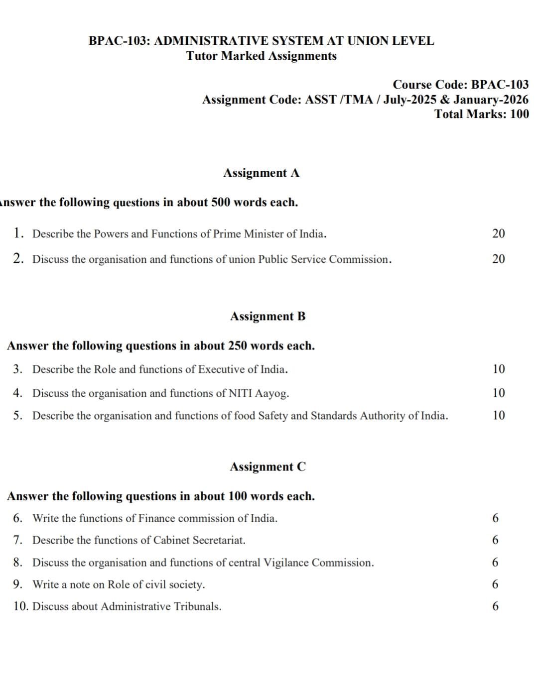 BPAC 103 IGNOU Solved Assignments 2025-26 (English) PDF Download – IGNOU Galaxy