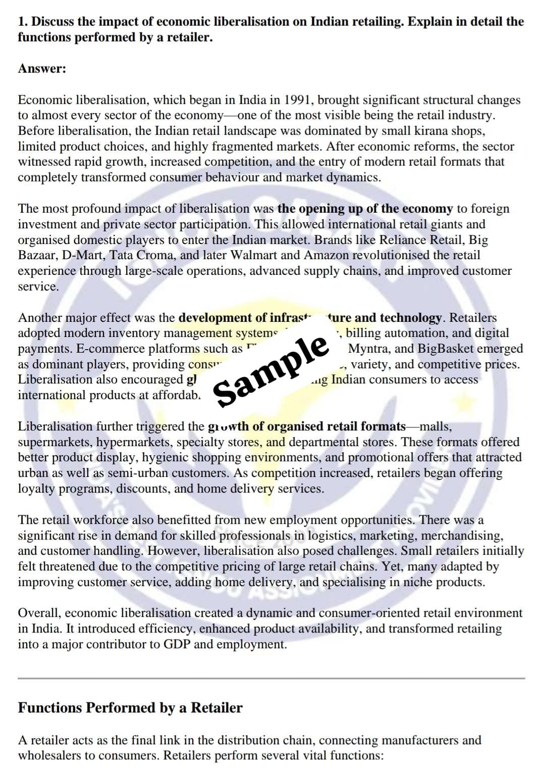 The course is practical in nature and prepares students for careers in supermarkets, malls, franchise outlets, e-commerce platforms, and retail chains. It also builds entrepreneurial understanding for those planning to start their own retail business.