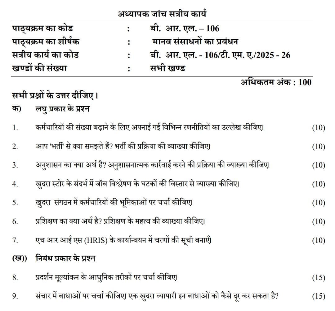 BRL 106 IGNOU Solved Assignments 2025-26 (HINDI) PDF Download – IGNOU Galaxy