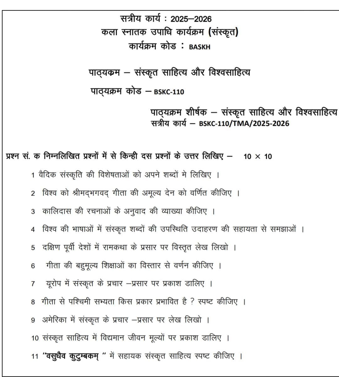 BSKC 110 IGNOU Solved Assignments 2025-26 (Sanskrit) PDF Download – IGNOU Galaxy